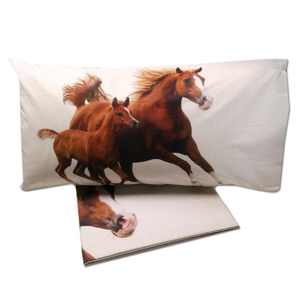 Completo lenzuola in 100% cotone per letto 1 piazza e mezza con stampa digitale cuore e rose.